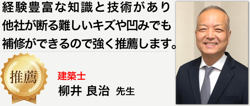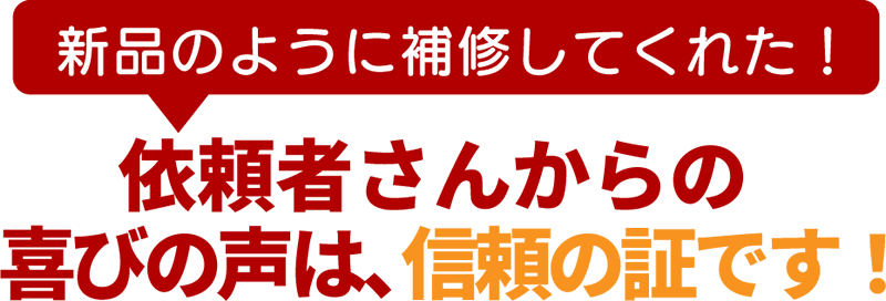 「他社が断る難しいキズ・凹み・剥がれ・穴でもリペア補修」をモットーに、ご依頼主様からの信頼と実績を得る。